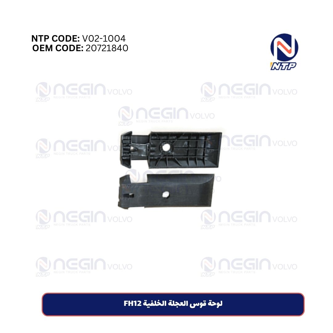 لوحة قوس العجلة الخلفية FH12 | رقم القطعة 20721840 يُستخدم لتثبيت رفرف العجلة الخلفية في شاحنات فولفو FH12. يمنع هذا المشبك حركة أو اهتزاز الرفرف أثناء القيادة، مما يحافظ على ثباته ويزيد من عمره الافتراضي.