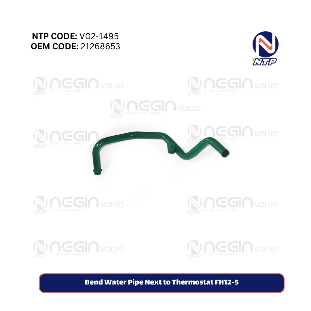 The 5-bend coolant pipe beside the thermostat (Part No. 21268653) is a vital cooling system component in Volvo FH12 trucks. With its precise 5-bend geometry, this pipe ensures smooth coolant flow through tight and curved engine compartments, connecting the thermostat to other parts of the engine cooling system.