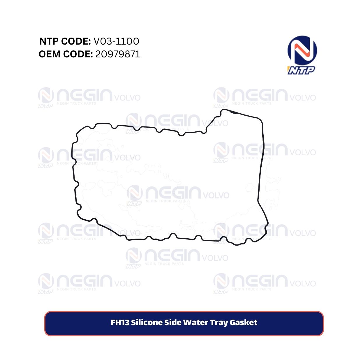The FH13 Silicone Side Water Tray Gasket is an essential component of the cooling system in Volvo FH13 trucks. Identified by part number 20979871, this gasket plays a crucial role in sealing the side water tray and preventing coolant leaks. Made from high-quality, heat- and pressure-resistant silicone, it enhances durability and improves the cooling system’s efficiency.