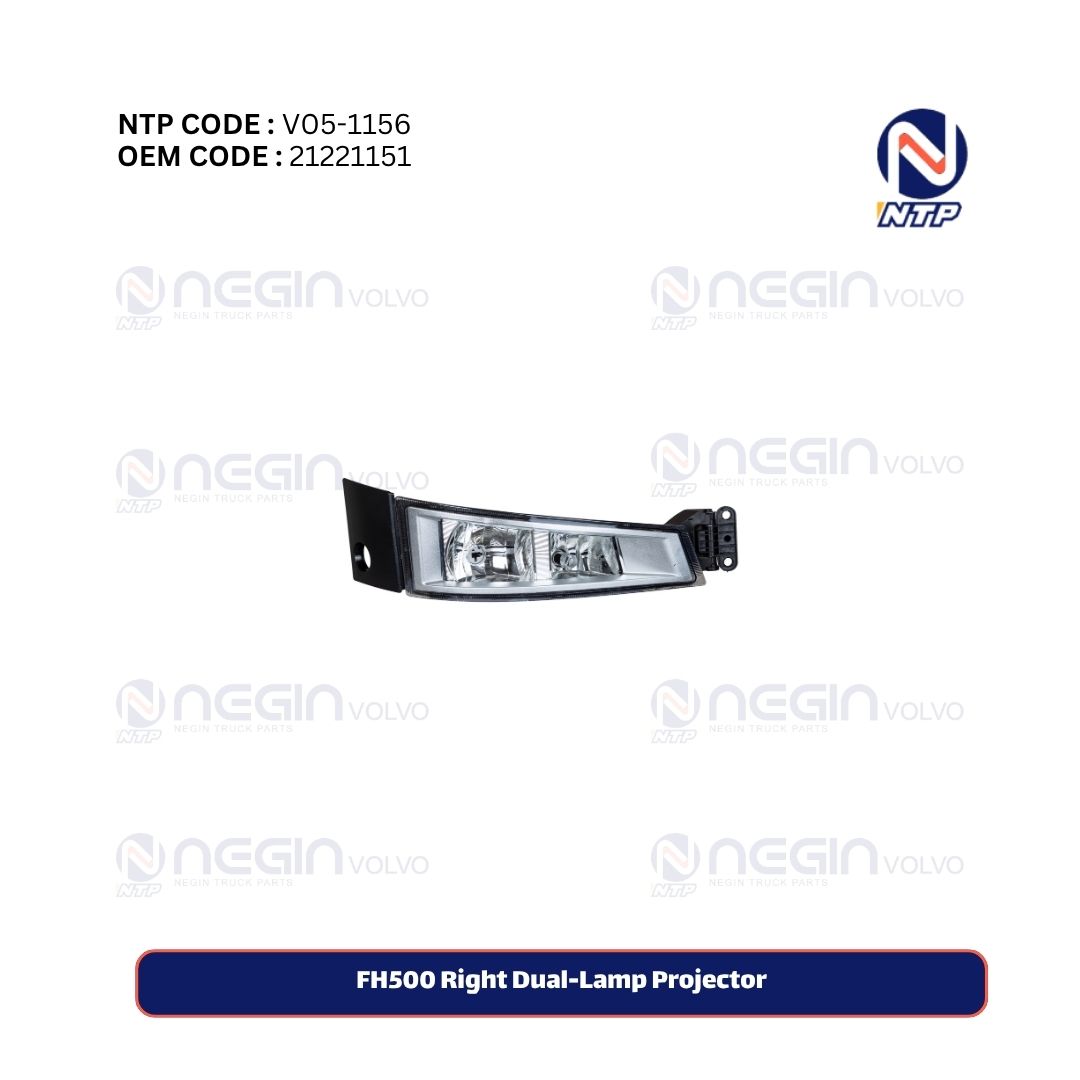 The Right-Side Dual-Lamp Projector (Part No. 21221151) for Volvo FH500 is a high-performance front fog and driving light unit designed to deliver powerful, focused illumination under all driving conditions — fog, rain, or night driving.