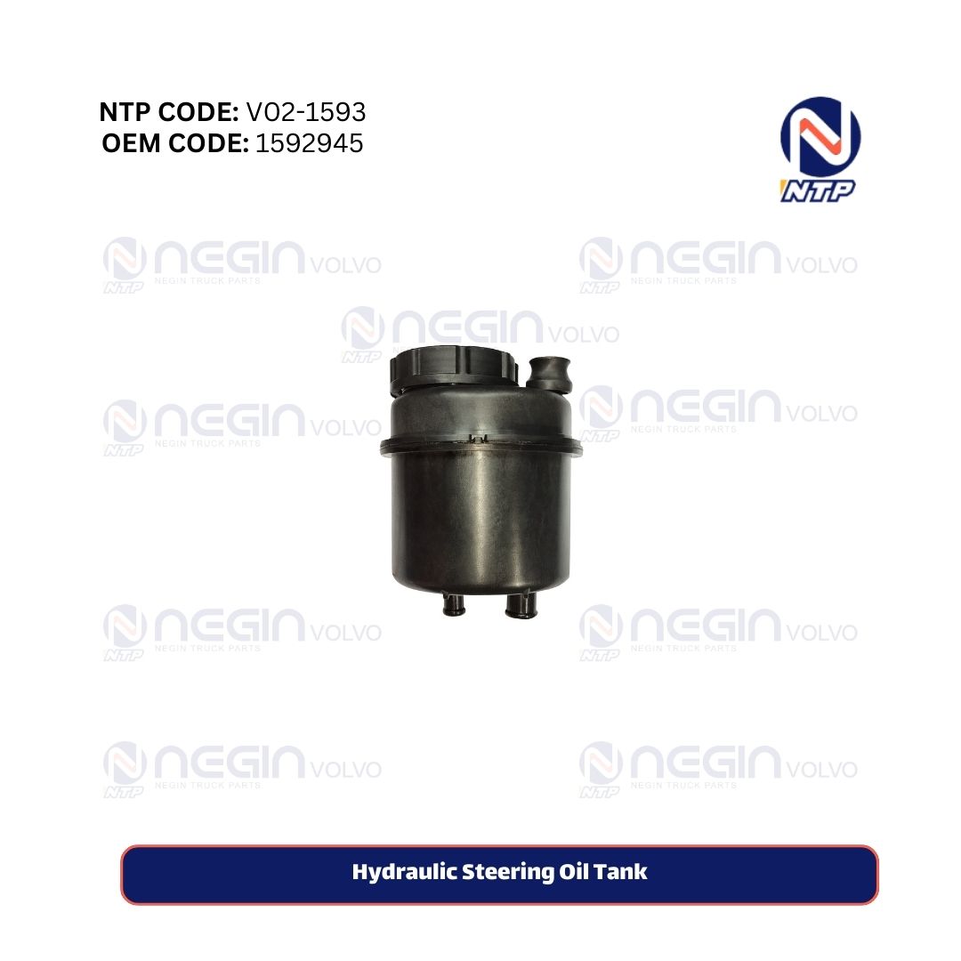 The power steering oil reservoir (Part No: 1592945) is a key component of the hydraulic steering system in Volvo FH12 and FM series trucks. It stores and supplies hydraulic fluid to the power steering pump, ensuring smooth and efficient steering, especially under heavy load conditions.
