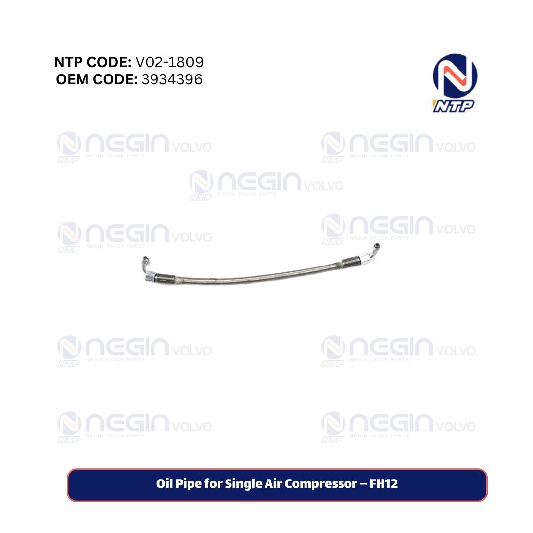 The oil pipe for the single air compressor on Volvo FH12 trucks, part number 3934396, plays a vital role in the lubrication system. This pipe delivers engine oil to the air compressor, reducing internal friction and preventing overheating. Proper oil flow through this pipe ensures the compressor and air brake system run reliably and efficiently.