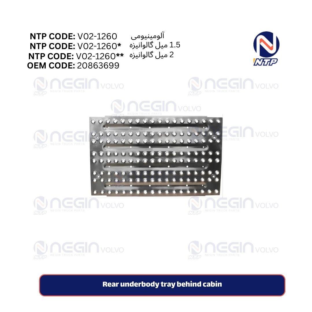 The Rear underbody tray behind cabin with part number 20863699 is a durable and essential panel mounted on the rear chassis of Volvo trucks. Made of galvanized aluminum, it provides excellent protection against corrosion and shields the truck’s underbody components from road debris and weather damage.