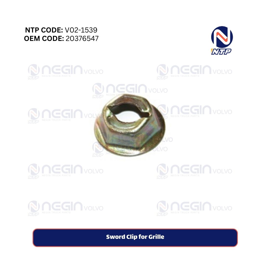 The Sword-Type Front Grille Clip (Part No. 20376547) is an essential component used to secure the front grille frame on Volvo trucks. Its unique sword-shaped design ensures a tight, durable fit and prevents any loosening or vibration during operation.