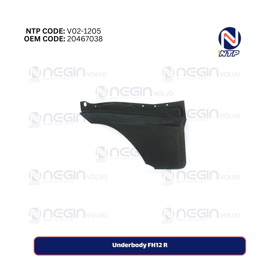 The Underbody FH12 R (Part No. 20467038) is a protective and aesthetic body panel installed under the passenger-side door. It completes the side profile of the truck, providing both visual appeal and essential protection from debris, water, and mechanical wear.