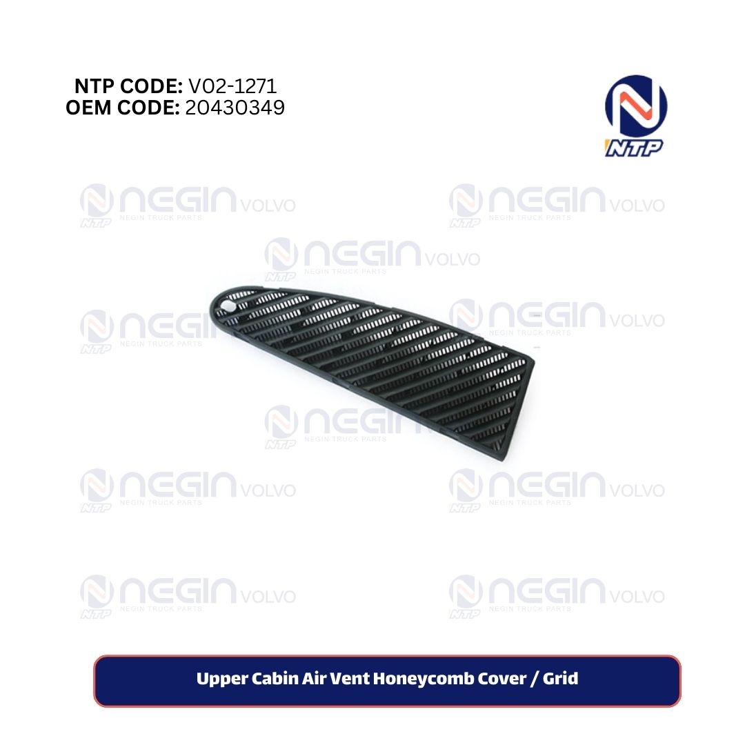 The Upper Cabin Air Vent Honeycomb Cover / Grid | Part No: 20430349 is a functional and protective component used in heavy-duty vehicles like Volvo trucks. Its honeycomb design allows optimal airflow while filtering out dust and debris from entering the cabin through the upper air intake. It also adds a sleek appearance to the top part of the cabin.
