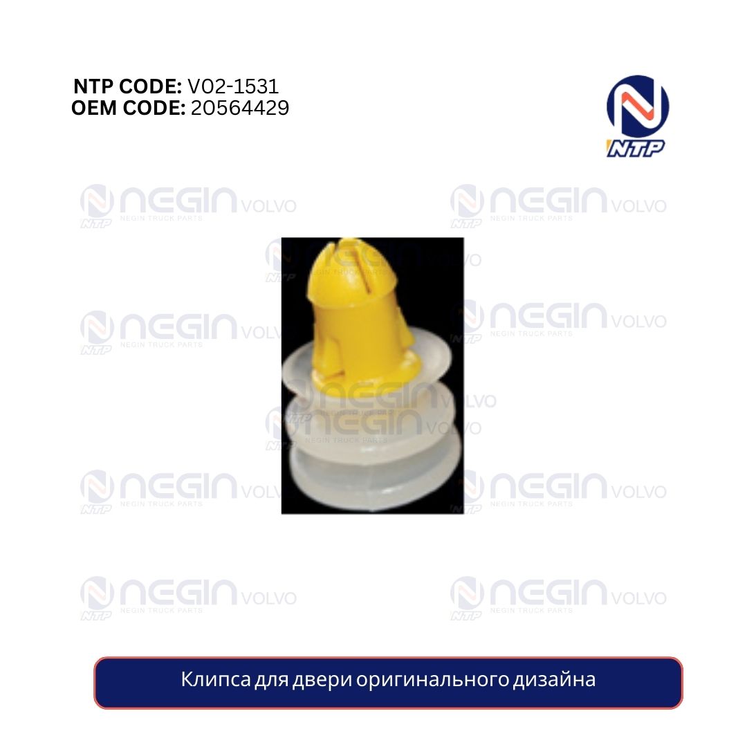Клипса наружной отделки двери Volvo (артикул 20564429) предназначена для крепления декоративных или защитных панелей на внешней стороне двери грузовика. Обеспечивает плотное и надёжное крепление без люфта, что исключает шум и вибрации. Совместима с моделями FH12, FH13, FH, FM.