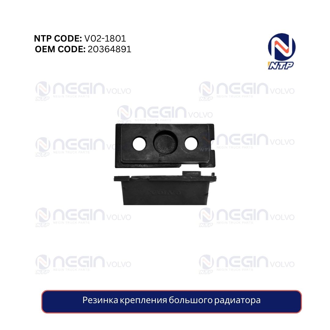Резиновая опора радиатора (большая), артикул 20364891, используется в системе охлаждения грузовиков Volvo серий FH и FM. Устанавливается между радиатором и рамой, амортизируя удары и вибрации во время движения, что предотвращает повреждение радиатора и продлевает срок его службы.
