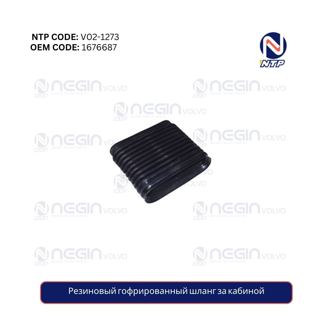 Резиновый гофрированный шланг за кабиной | Арт. 1676687, предназначен для вентиляционных и воздушных систем грузовиков Volvo FH12, FH13, FM. Благодаря гофрированной конструкции, патрубок устойчив к вибрациям и движениям кабины, обеспечивая надежную герметизацию и передачу воздуха или жидкости.
