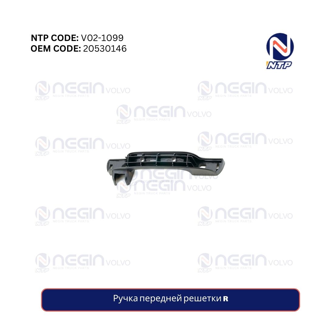 Ручка передней решетки R (артикул 20530146) предназначена для установки на грузовики Volvo FH и FM. Она крепится с правой стороны решётки радиатора и обеспечивает удобный доступ, захват или поднятие панели во время обслуживания.