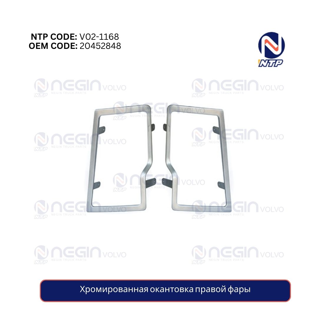 Хромированная накладка на правую фару, артикул 20452848, предназначена для декоративной и защитной отделки передней правой фары грузовиков Volvo (модели FH, FM). Изготовлена из прочного ABS-пластика с хромированным покрытием, она придаёт эстетичный внешний вид и защищает фару от погодных условий и мелких повреждений.