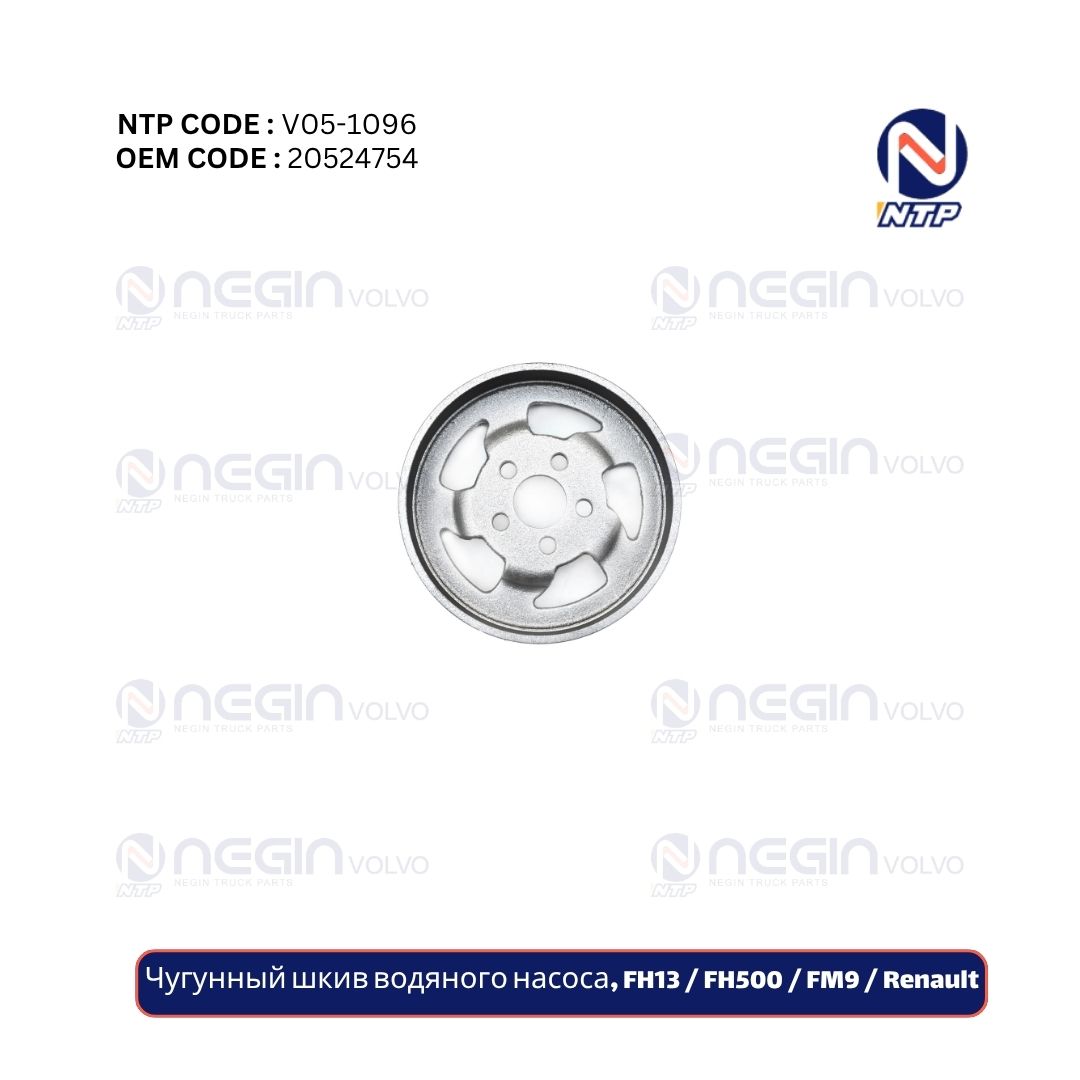 Шкив водяного насоса (чугунный) FH13 / FH500 / FM9 / Renault | Арт. 20524754 — важная часть системы охлаждения двигателя, обеспечивающая передачу вращения от ремня к водяному насосу для постоянной циркуляции охлаждающей жидкости.