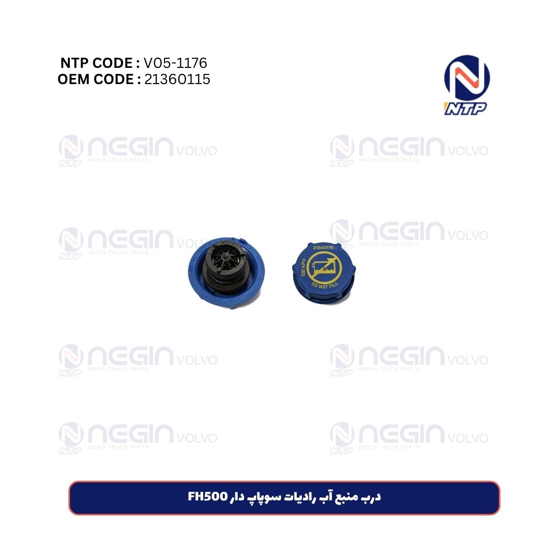 درب منبع آب رادیاتور سوپاپدار FH500 با کد فنی 21360115 یکی از قطعات حیاتی سیستم خنککننده کامیون FH500 است. این درب علاوه بر آببندی مخزن انبساط، دارای سوپاپ اطمینان (Pressure Relief Valve) بوده که وظیفه کنترل و تنظیم فشار داخلی سیستم خنککننده را برعهده دارد.