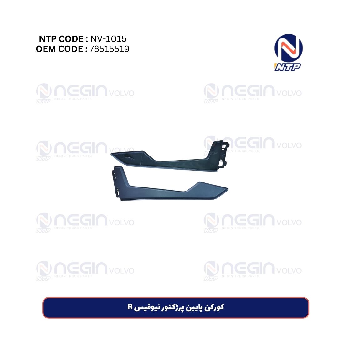 کورکن پایین پروژکتور نیوفیس R با کد فنی 78515519 برای پوشاندن و محافظت از بخش زیرین پروژکتور سمت راست در کامیونهای ولوو New Face طراحی شده است. این قطعه مانع ورود گل، آب، گردوغبار و ضربه به قسمت حساس چراغ جلو شده و باعث افزایش عمر و کارایی آن میشود. طراحی کاملاً مطابق با سپر اصلی، نصب آسان و ظاهری یکپارچه و استاندارد را به همراه دارد. این کورکن گزینهای عالی برای جایگزینی قطعات آسیبدیده یا گمشده به شمار میرود.